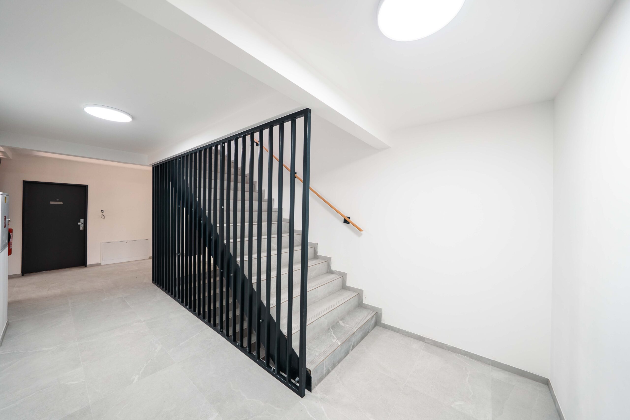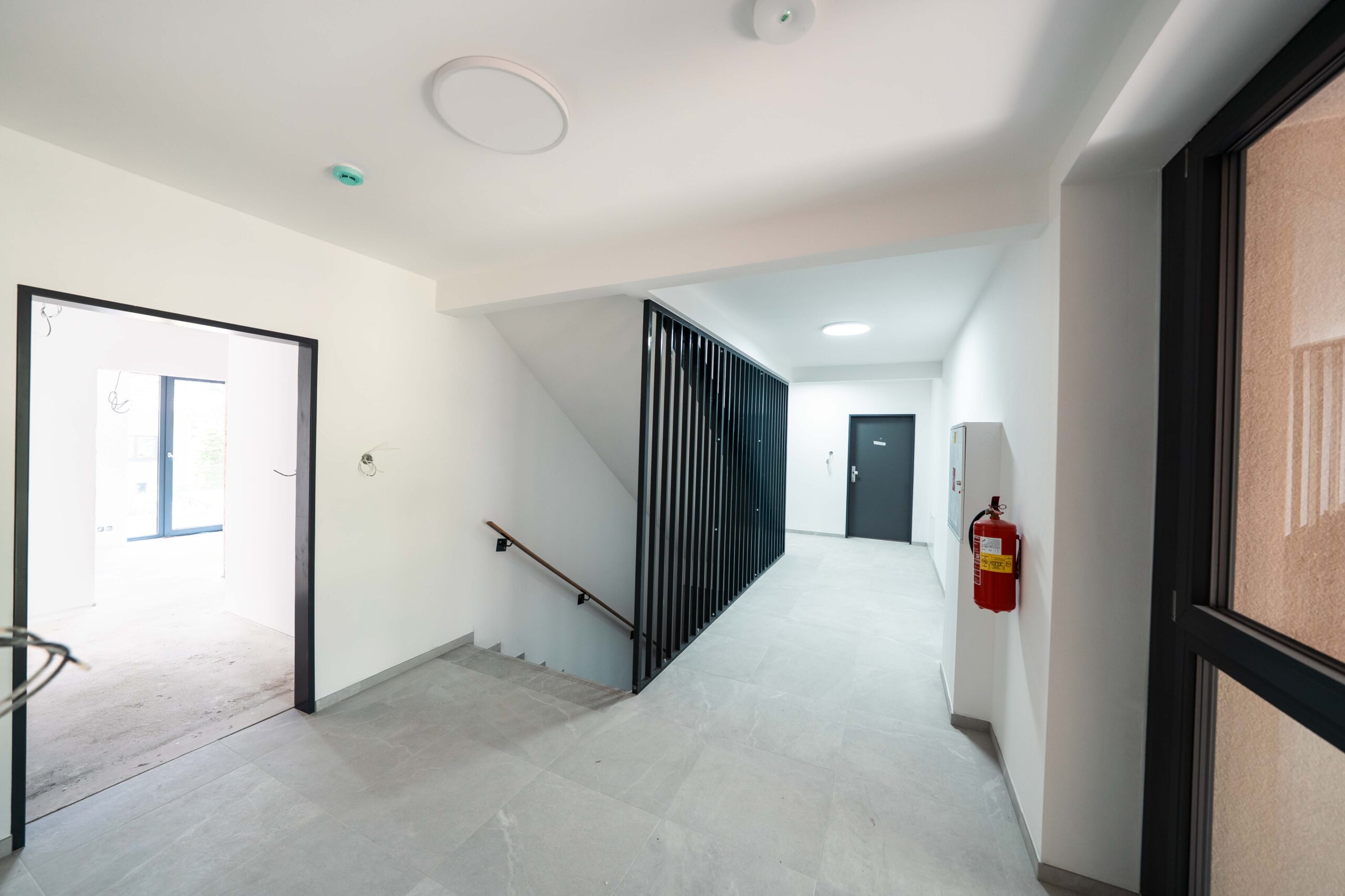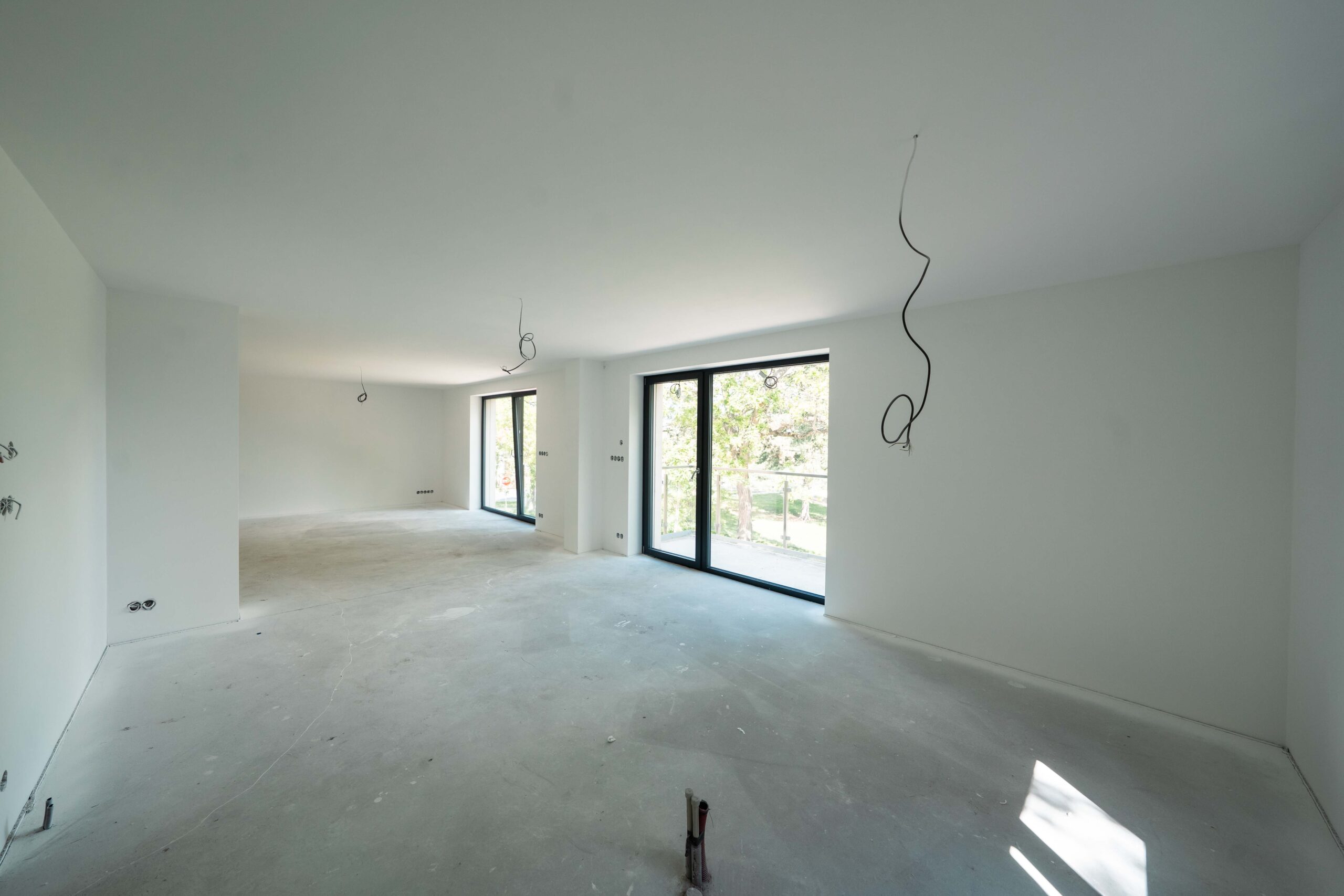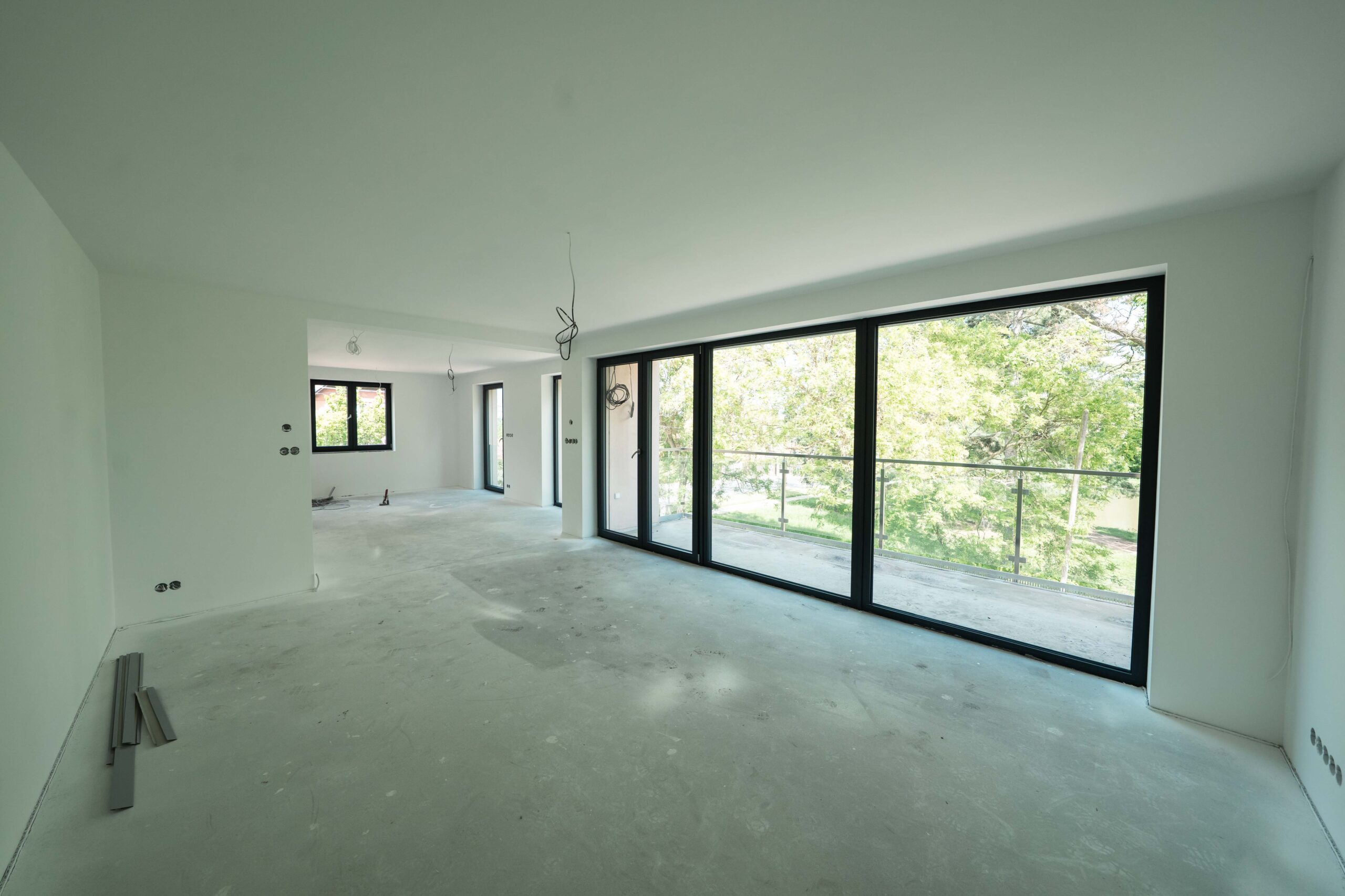 The ground-floor apartments feature private gardens, while the upper-floor units offer loggias and terraces with panoramic views of the surroundings. Each apartment is equipped with automatic external blinds, preparation for air conditioning, a smart home system, and a security system. Underfloor heating is provided by a central gas boiler and sensors that measure the consumption of each apartment. A garage parking space and a storage room can be purchased with each apartment.
